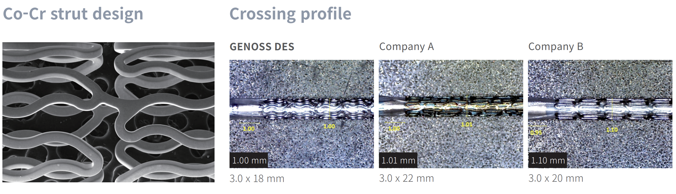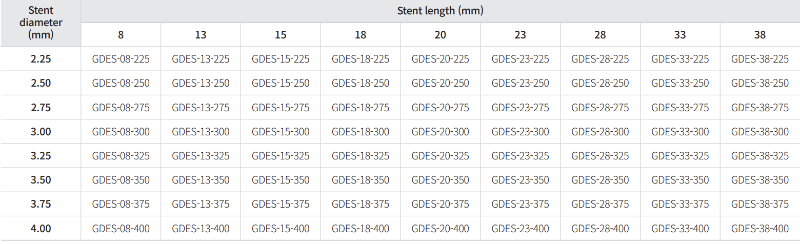 • 70µm of strut thickness for exceptional flexibility and minimal vessel injury