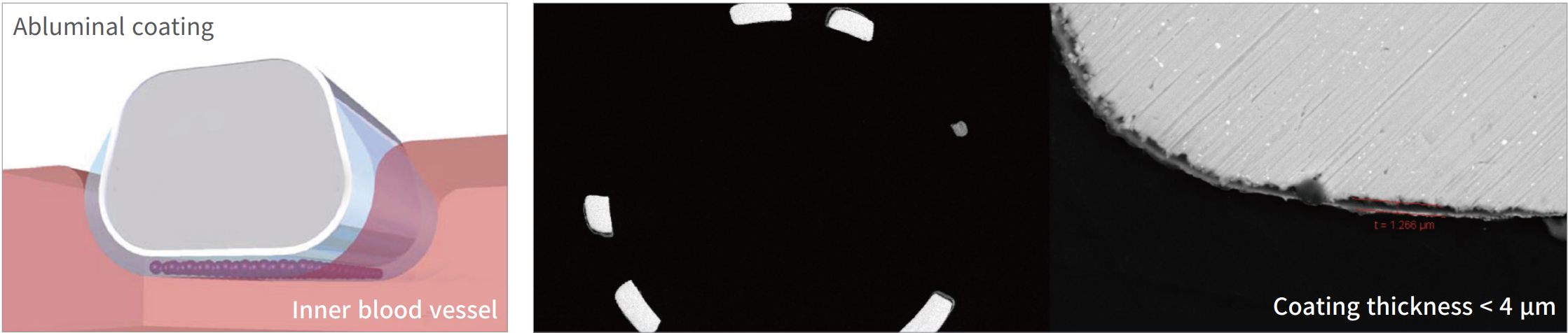 • Limited coating of abluminal bioresorbable polymer on part where stent contacts with the inner wall of vessels