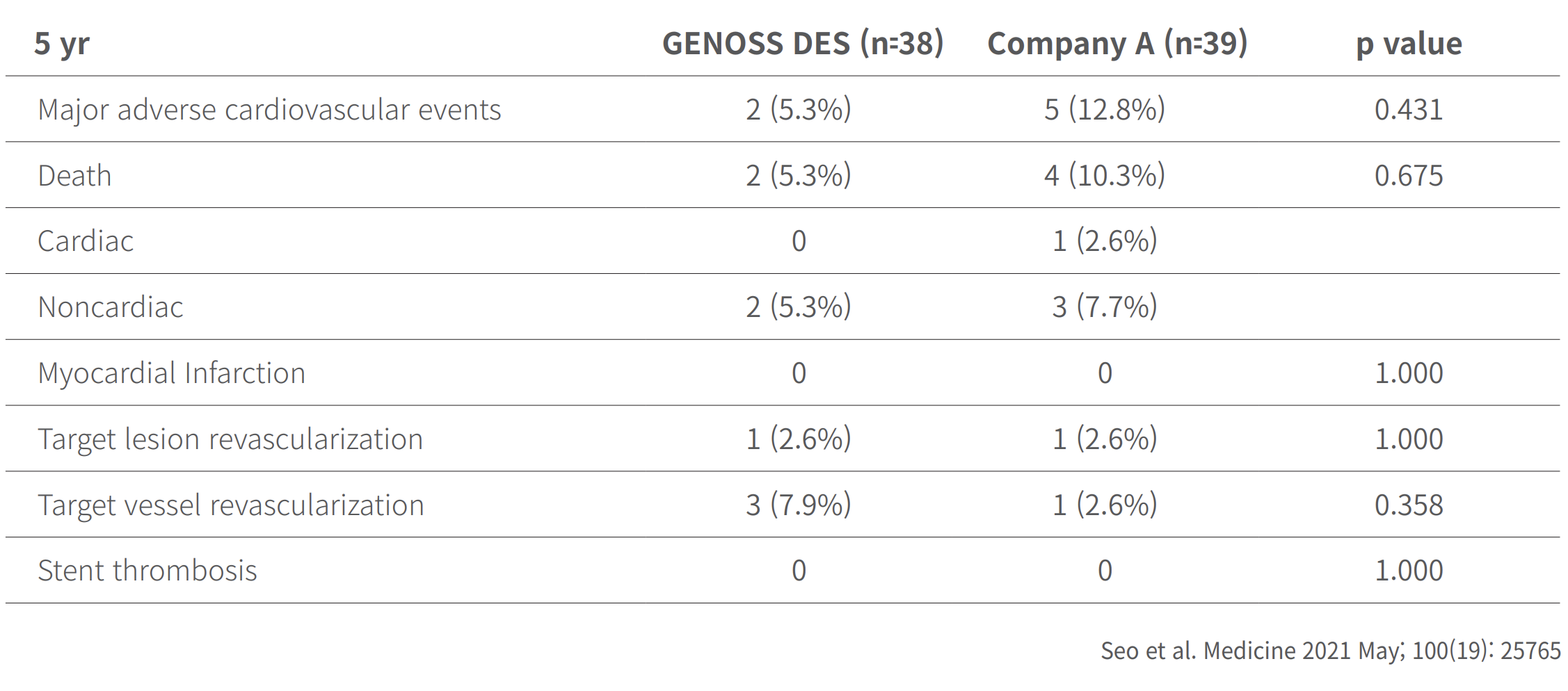 Clinical outcomes at 5 years