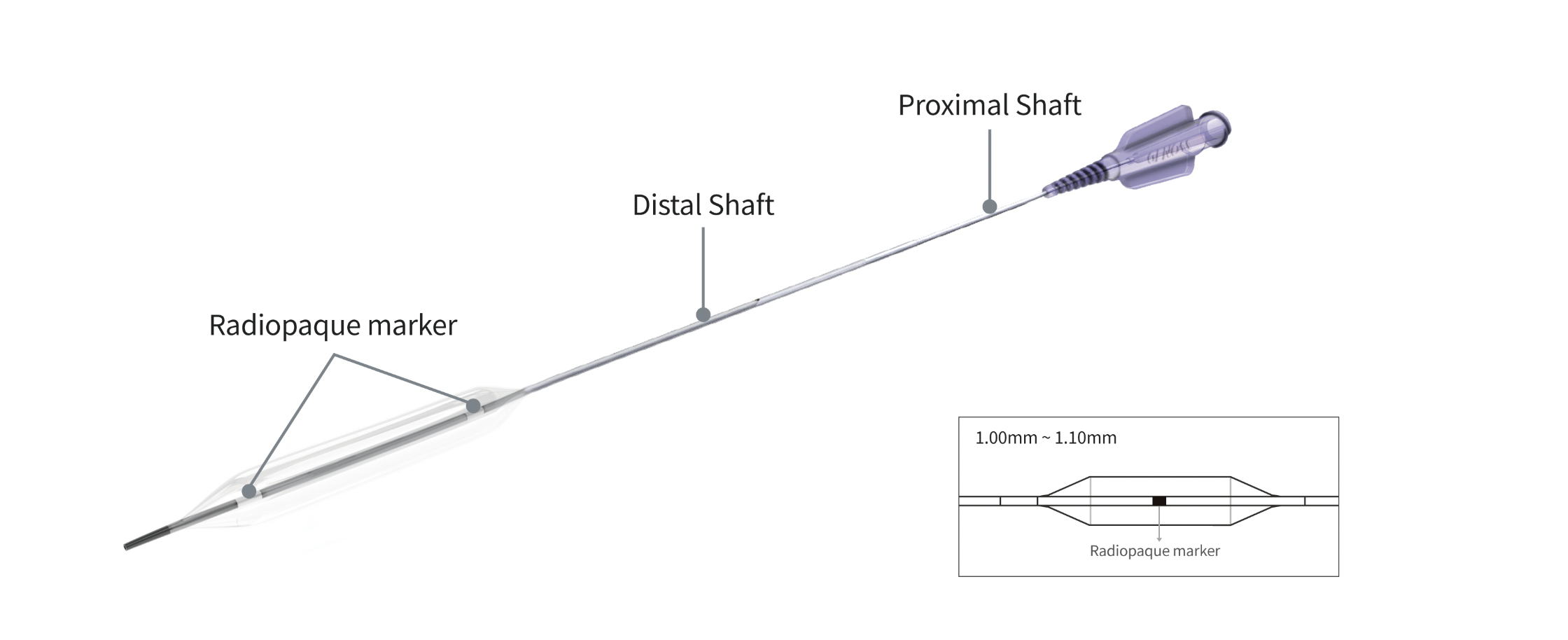| Distal shaft | 2.8 Fr (0.92 mm) |