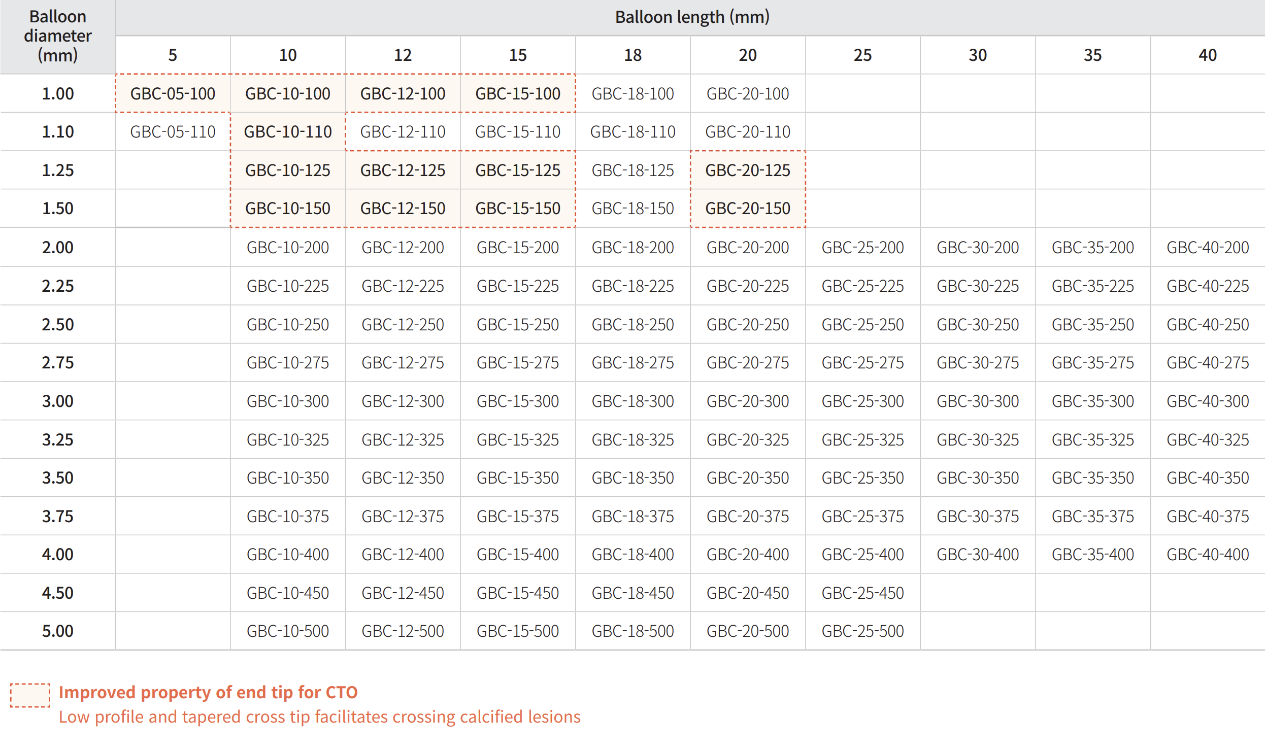 | Lesion entry profile | 0.017″ (0.43 mm) |