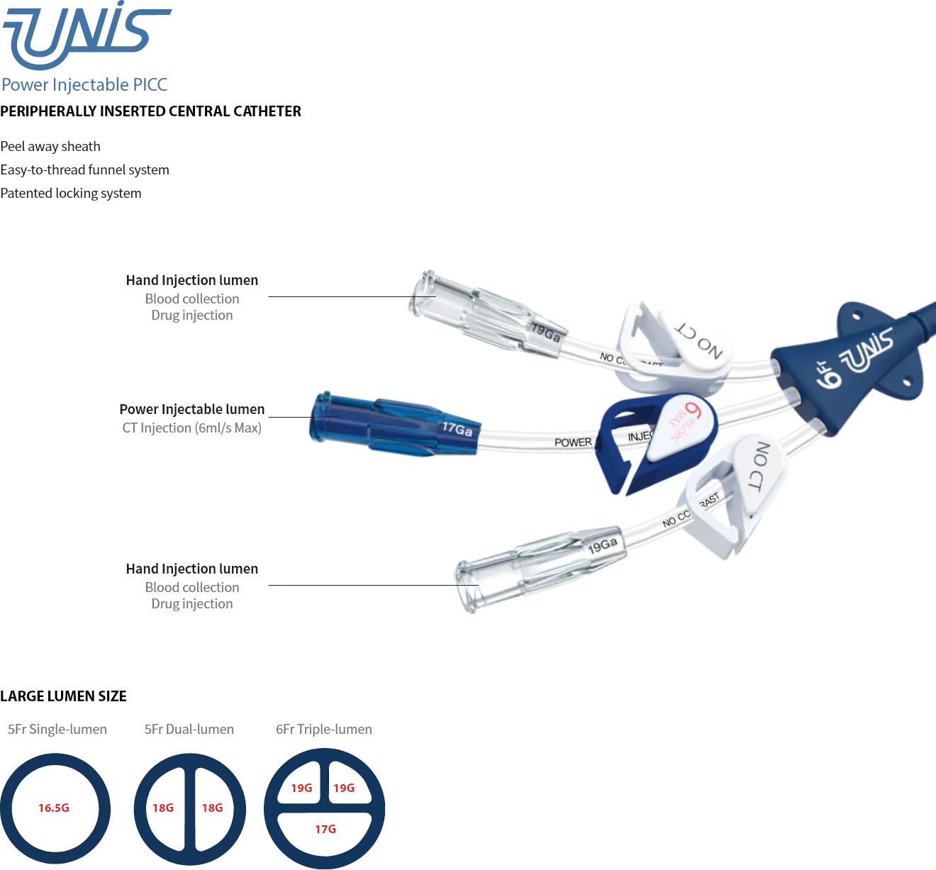 – Large lumen diameter for high flow rate
